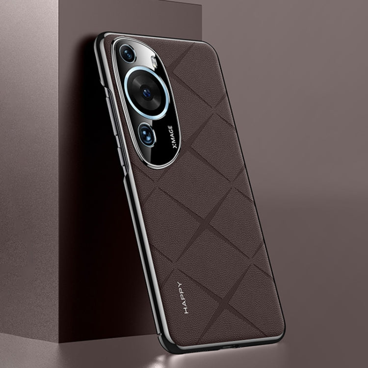Funda de Cuero para Huawei P60 Art con Protección para PC (Marrón)