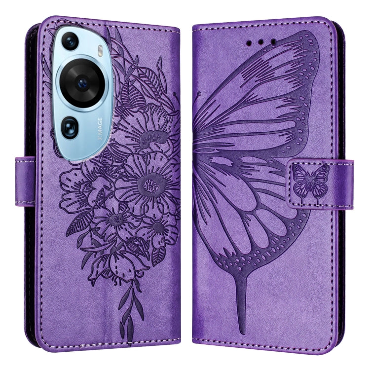 Funda de Cuero para Huawei P60 con Mariposa en Relieve Artístico (Púrpura)