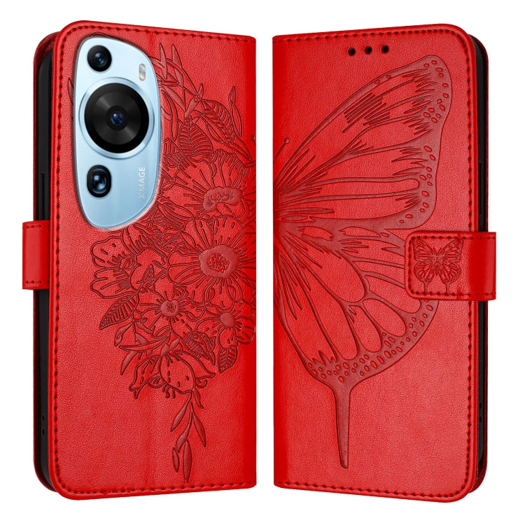Funda de Cuero para Huawei P60 con Mariposa en Relieve Artístico (Rojo)