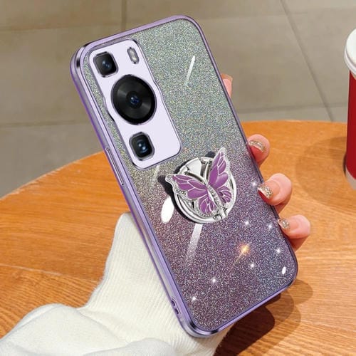 Funda TPU para Huawei P60 con Soporte de Mariposa y Brillo Degradado (Púrpura)