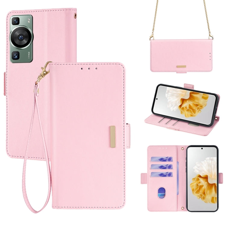 Funda de Cuero para Huawei P60 y P60 Pro con Cadena Cruzada (Rosa)