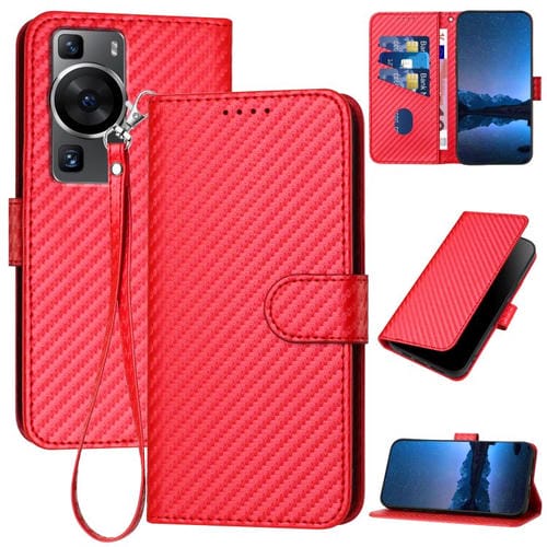 Funda de Cuero para Huawei P60 / P60 Pro Yx0070 con Hebilla de Fibra de Carbono y Cordón (Rojo)
