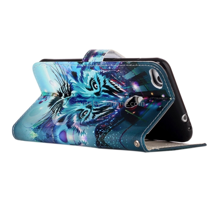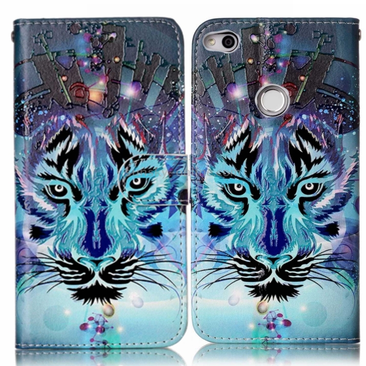 Funda de Cuero para Huawei P8 Lite (2017) con Tapa Horizontal, Patrón de Lobo, Soporte, Ranuras y Billetera (Negro)