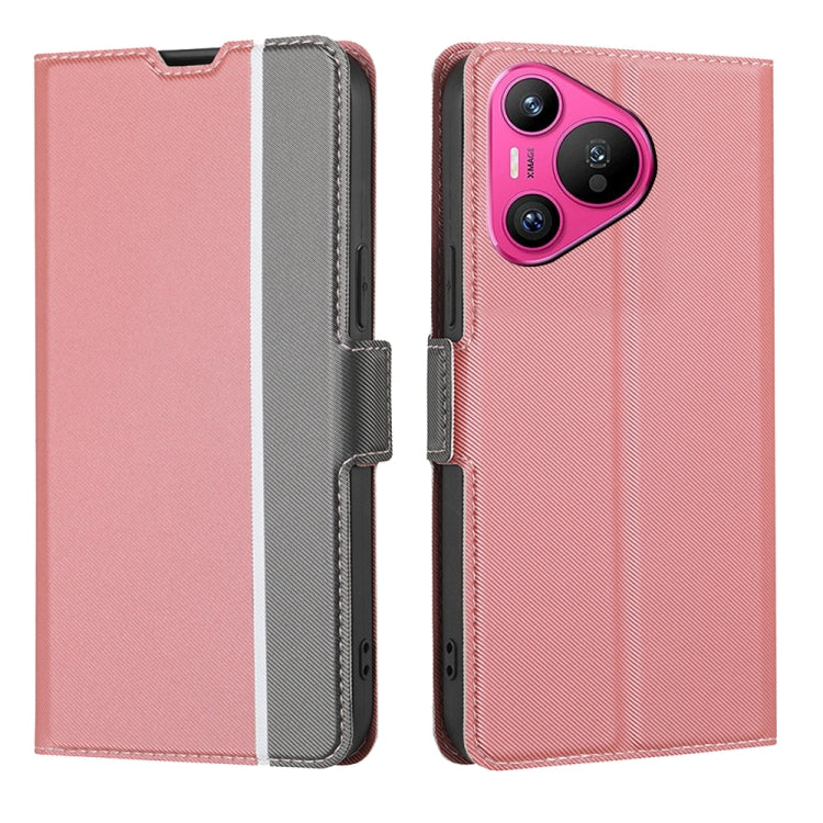 Funda de Cuero para Huawei Pura 70 5G con Botón Lateral y Textura de Sarga (Rosa)