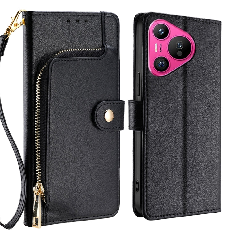 Funda de Cuero para Huawei Pura 70 5G con Bolsa y Cremallera (Negro)