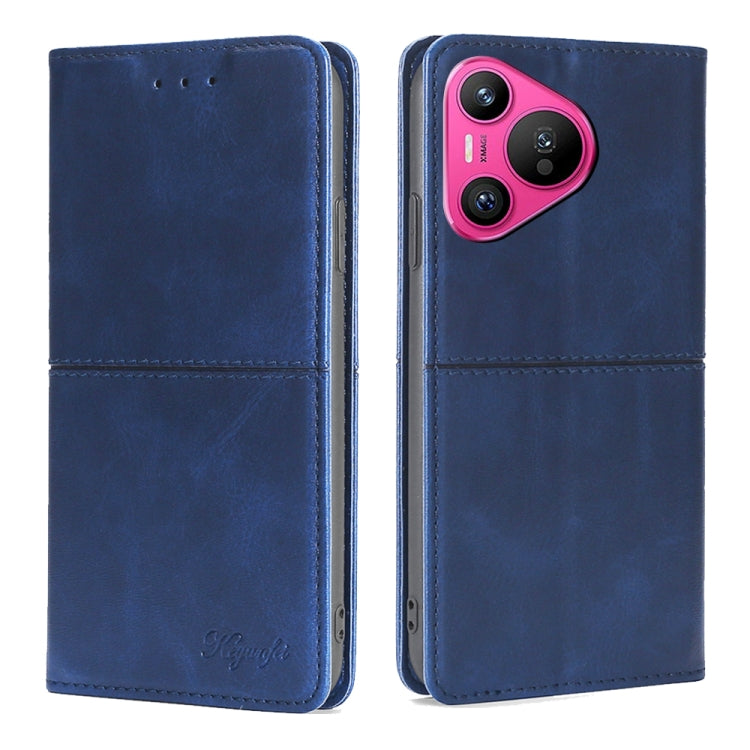 Funda para Huawei Pura 70 5G de Cuero Magnético con Textura de Vaca (Azul)