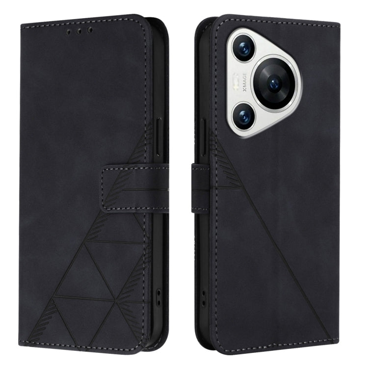 Funda de Cuero para Huawei Pura 70 Crossbody con Tapa en Relieve 3D (Negro)