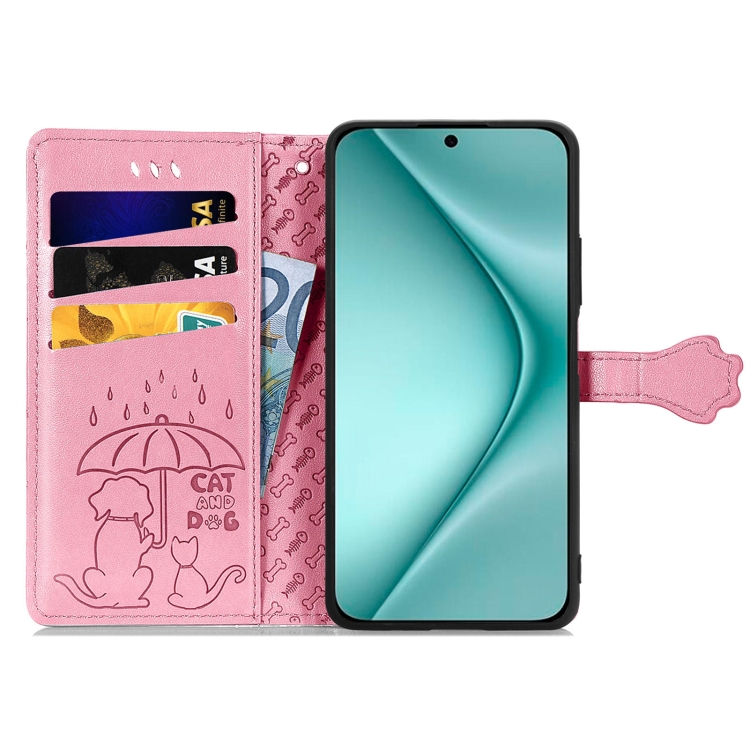 Funda de Cuero para Huawei Pura 70 con Relieve Perros y Gatos (Rosa)