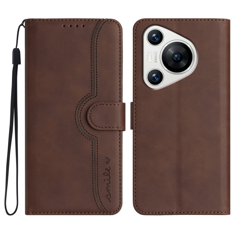 Funda de Cuero para Huawei Pura 70 con Sensación de Piel y Patrón de Corazón (Marrón)