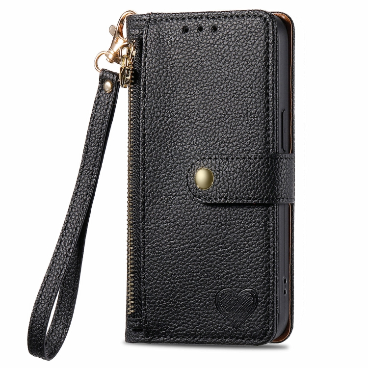 - 1x Funda de Cuero para Huawei Pura 70 Love Zipper Lanyard (Negro)