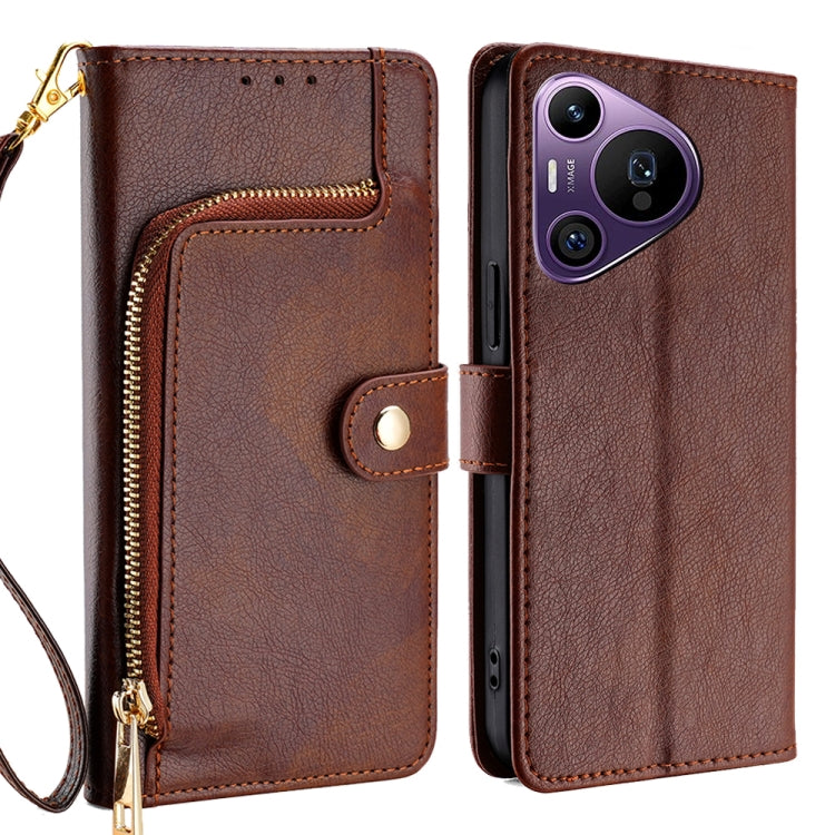 Funda de Cuero para Huawei Pura 70 Pro y 70 Pro + 5G con Bolsa y Cremallera (Marrón)