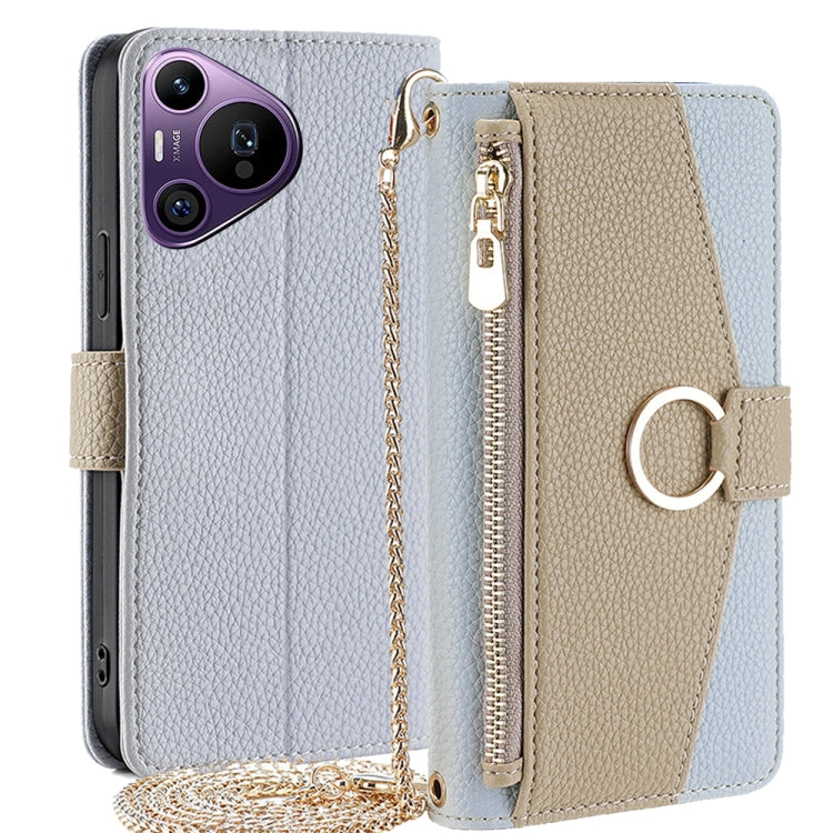 Funda para Huawei Pura 70 Pro / 70 Pro + 5G de Cuero con Textura Litchi Cruzada (Azul)