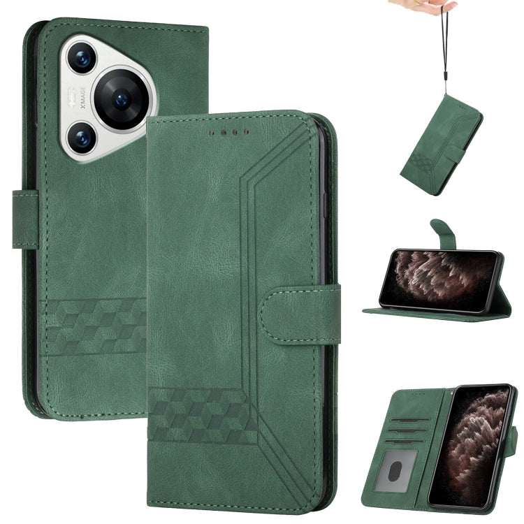Funda para Teléfono Huawei Pura 70 Pro/70 Pro+ Cuero con Tapa Cubic Skin Feel (Verde)