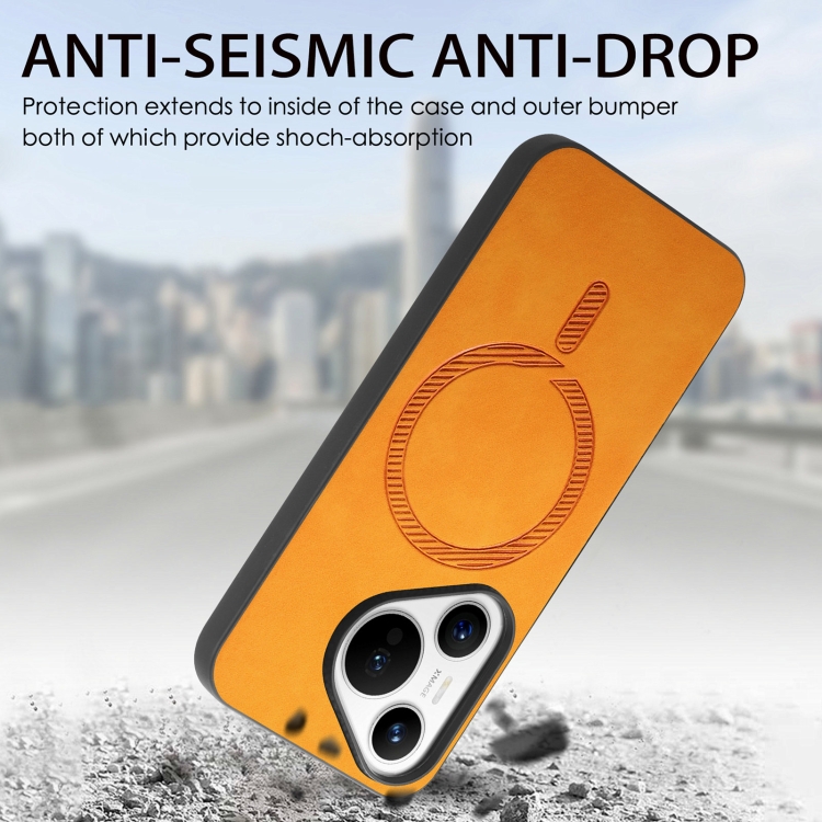 Funda para Huawei Pura 70 Pro con Magsafe, PU Retro y Contraportada (Amarillo)