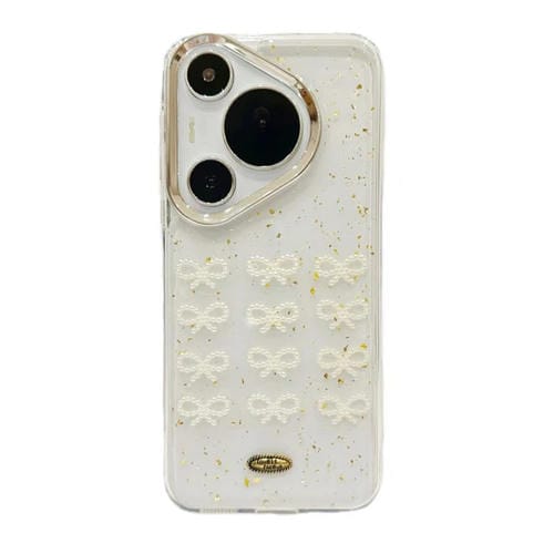 - 1x Estuche TPU Huawei Pura 70 Pro con Lazo de Perlas y Arcos de Lámina Dorada