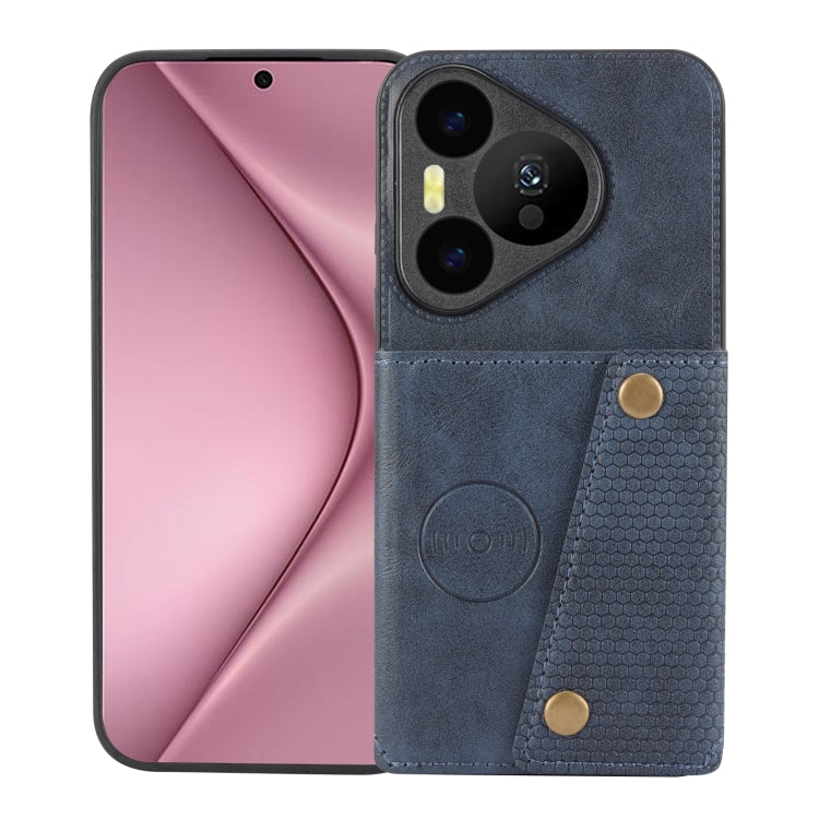 Funda Magnética Huawei Pura 70 Pro con Ranuras para Tarjetas y Doble Hebilla (Azul)