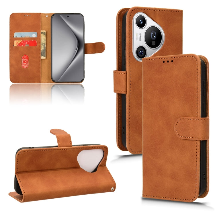 Funda de Cuero para Huawei Pura 70 Skin Feel con Tapa Magnética (Marrón)