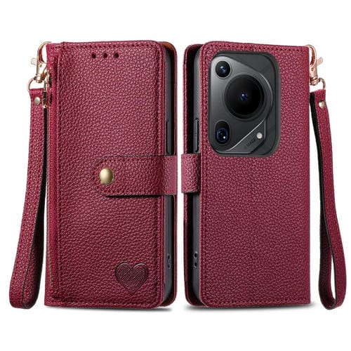 Funda de Cuero para Huawei Pura 70 Ultra Love con Zipper y Lanyard (Rojo)