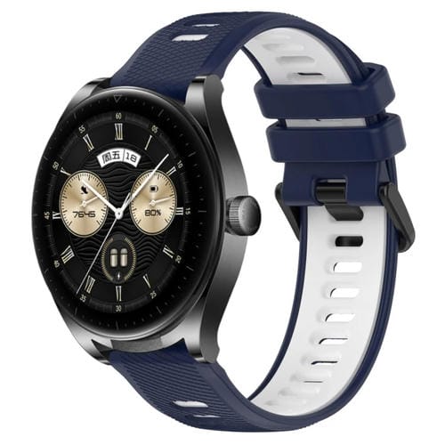 Correa para Huawei Watch Buds 22mm de Silicona Deportiva Bicolor (Azul Medianoche + Blanco)