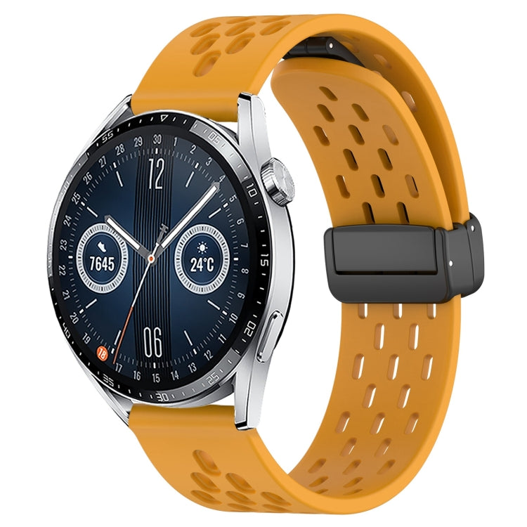 Correa de Silicona para Huawei Watch GT3 42mm 20mm con Cierre Magnético Plegable (Amarillo)
