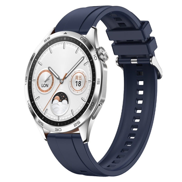Correa de Silicona para Huawei Watch GT4 46mm Patrón de Neumático con Hebilla Plateada (Azul Medianoche)