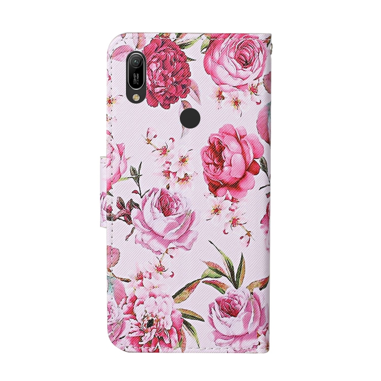Estuche de Cuero para Huawei Y6 (2019) con Tapa Horizontal, Soporte, Ranuras para Tarjetas y Billetera (Peony)