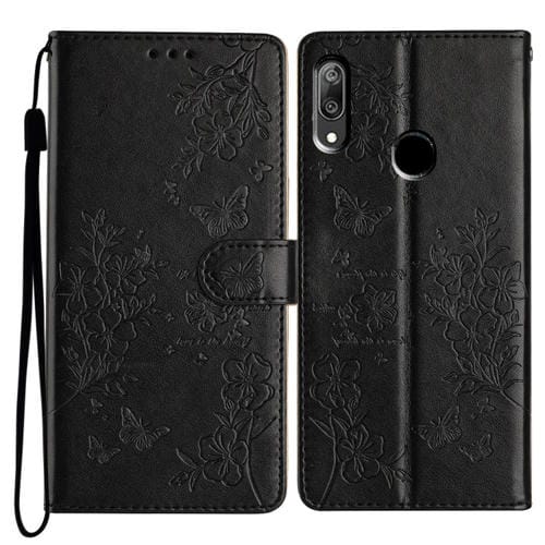 Funda para Huawei Y6 2019 de Cuero con Relieve Flor de Amor y Mariposa (Negro)