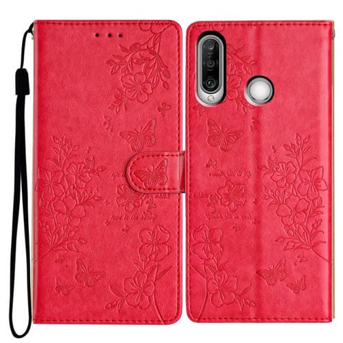 - 1x Funda de Cuero para Huawei Y6P Butterfly Love Flower con Relieve (Rojo)