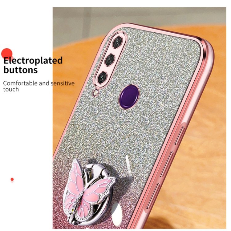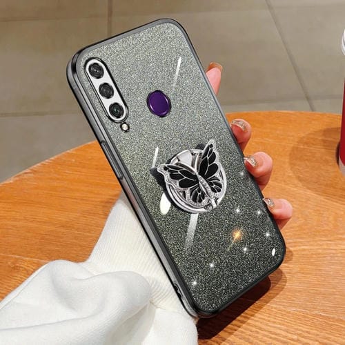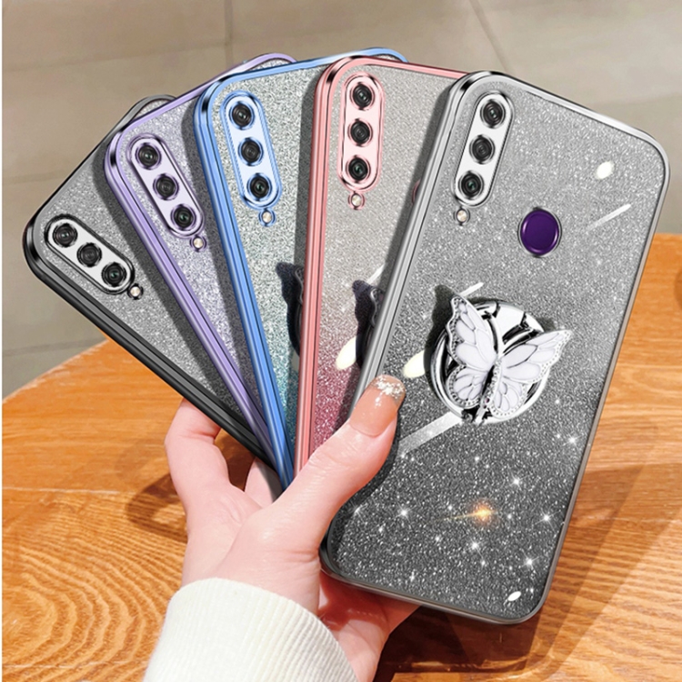 - 1x Estuche TPU para Huawei Y6P con Soporte de mariposa y brillo degradado (Negro)