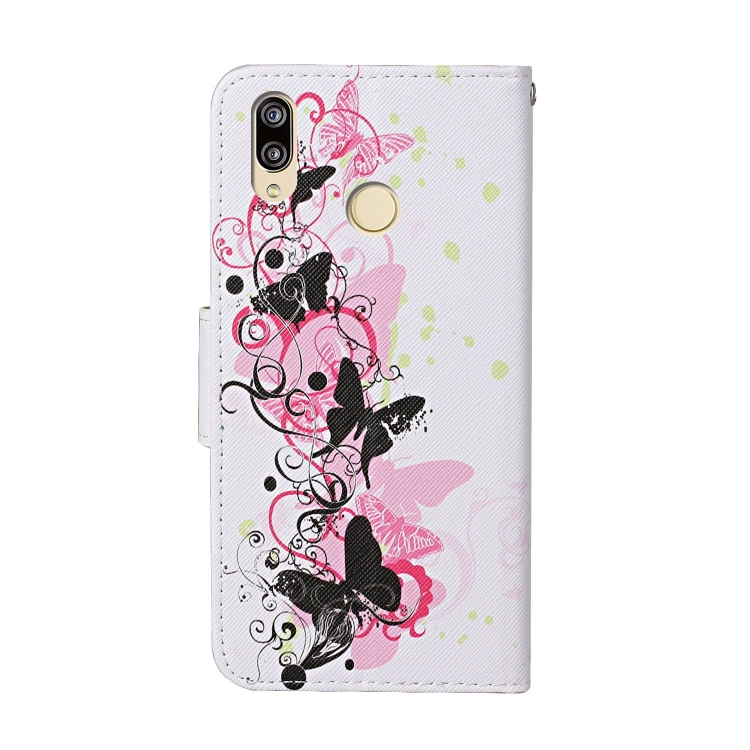 Estuche de Cuero Abatible Horizontal para Huawei Y7 (2019) con Soporte, Ranuras para Tarjetas y Billetera (Cuatro Mariposas)