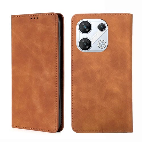 Funda de Cuero Magnética Skin Feel para Infinix Gt 10 Pro 5G (Marrón Claro)