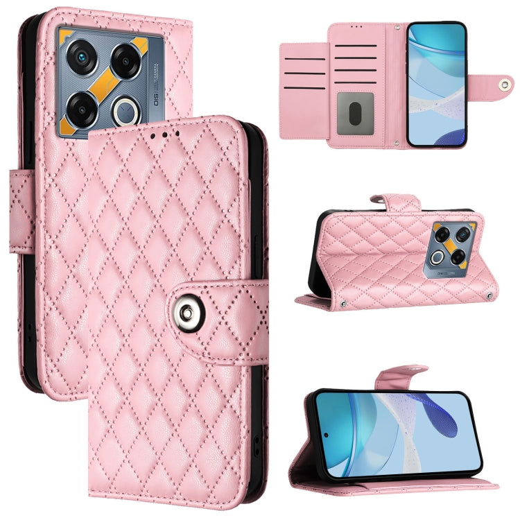 Funda para Teléfono Infinix GT 20 Pro X6871 Cuero con Tapa Textura Rómbica y Cordón (Rosa)