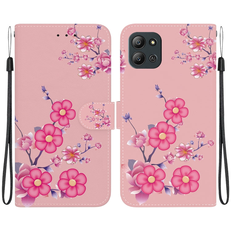 Estuche de Cuero para Infinix Hot 11 2022 con Dibujo Coloreado y Textura de Cristal (Flores de Cerezo)