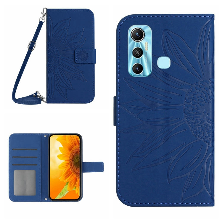 Funda Flip de Cuero Infinix Hot 11 Skin Feel con Cordón y Patrón Sun Flower (Azul Oscuro)