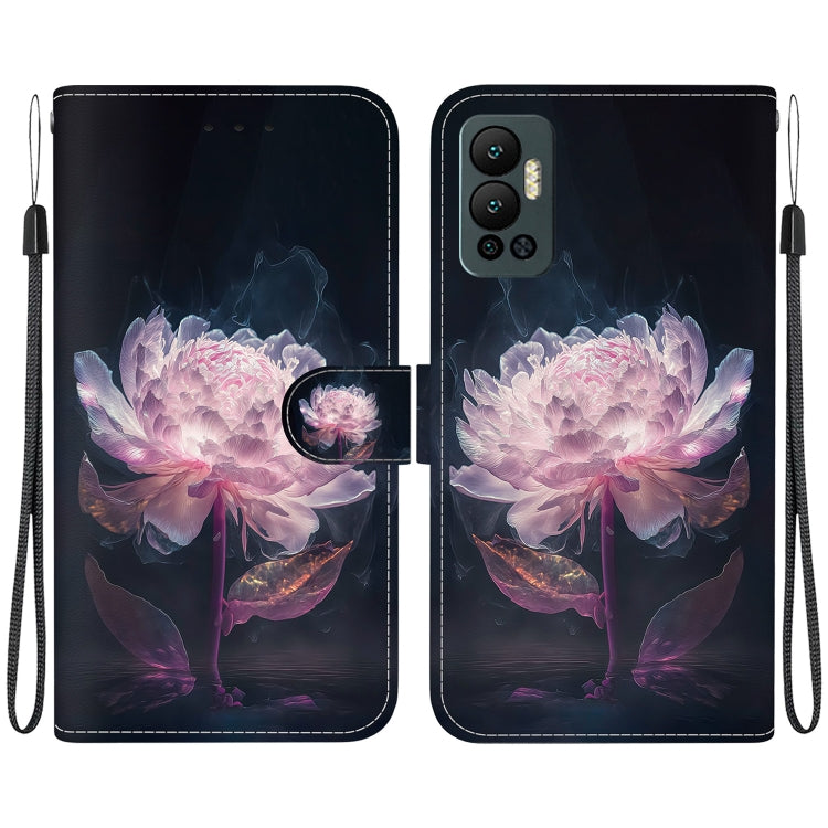 Estuche de Cuero para Infinix Hot 12 con Dibujo Coloreado y Textura de Cristal (Peonía Púrpura)