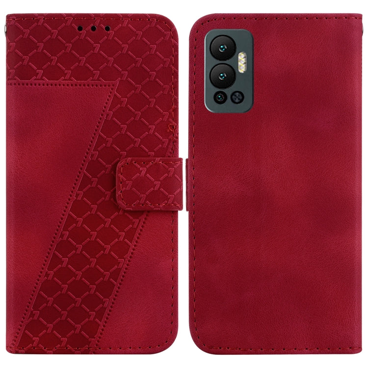 Estuche para Infinix Hot 12 de Cuero en Relieve en Forma de 7 (Rojo)