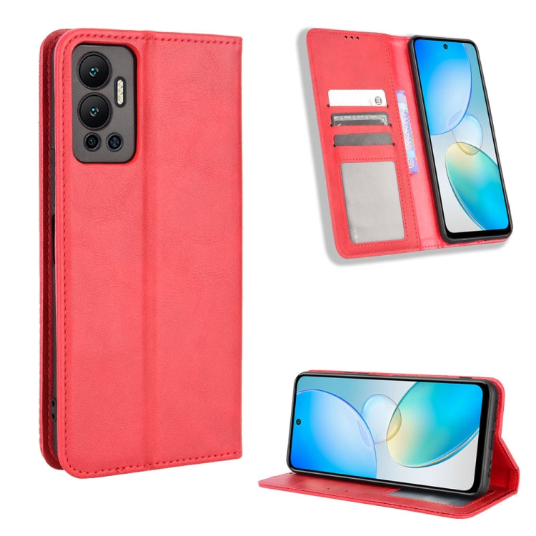 Funda de Cuero para Infinix Hot 12 con Hebilla Magnética y Textura Retro (Rojo)