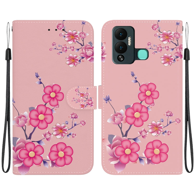 Estuche de Cuero para Infinix Hot 12 Play con Dibujo Coloreado y Textura de Cristal (Flores de Cerezo)