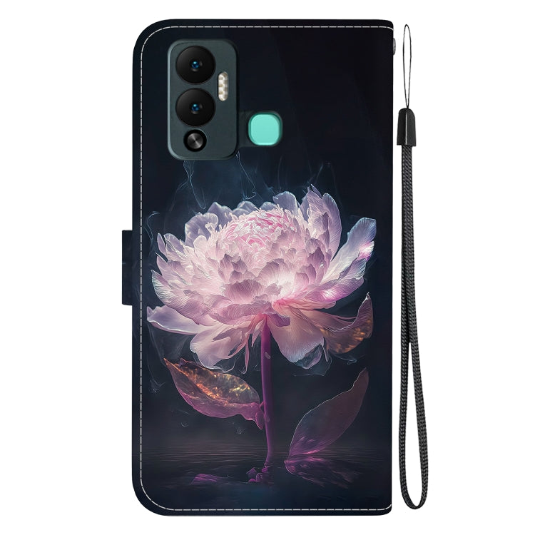 Estuche de Cuero para Infinix Hot 12 Play con Dibujo Coloreado y Textura de Cristal (Peonía Púrpura)
