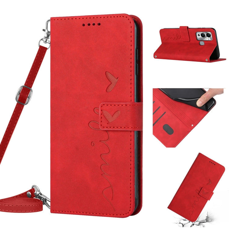 Funda de Cuero para Infinix Hot 12 Play con Cordón y Diseño Heart Pattern (Rojo)