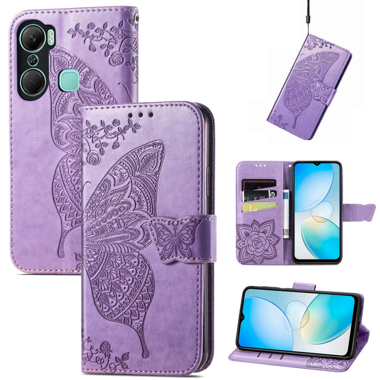 Estuche para Teléfono Infinix Hot 12 Pro Butterfly Love Flower Cuero En Relieve (Lavanda)