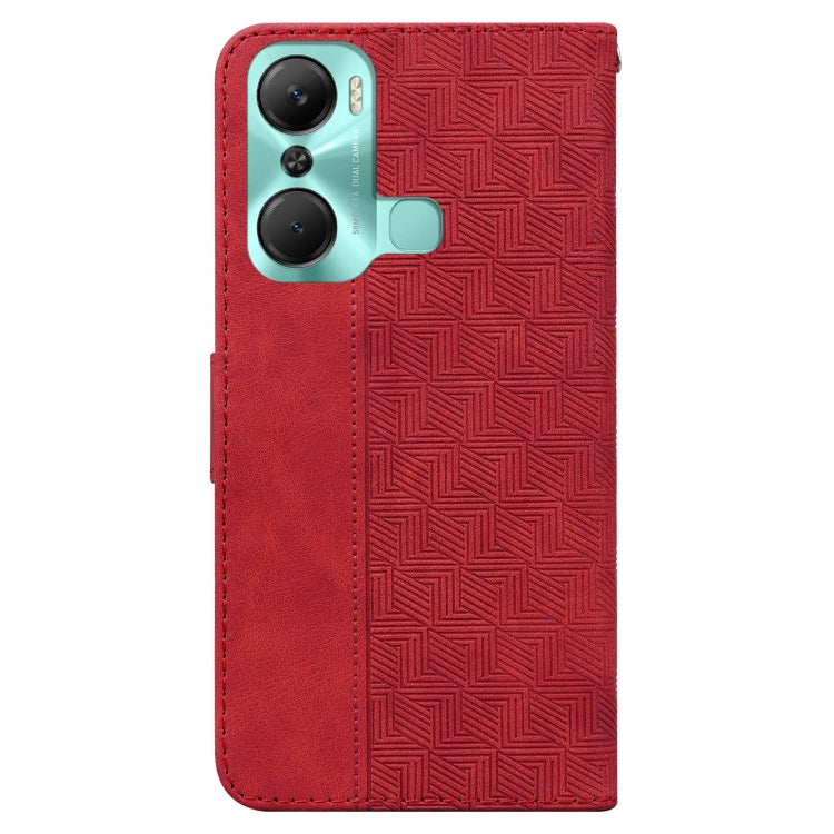 Estuche de Cuero para Infinix Hot 12 Pro con Tapa en Relieve Geométrico (Rojo)