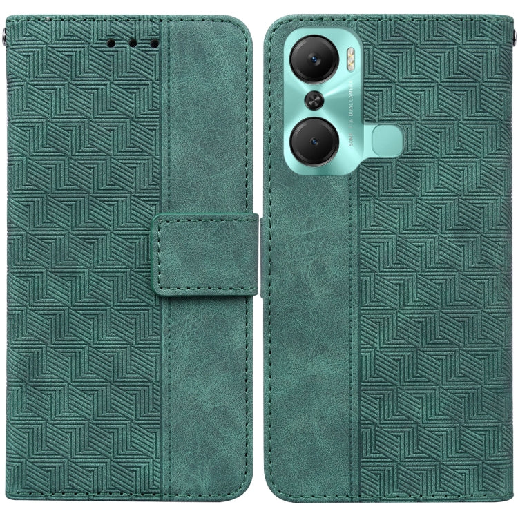 Estuche de Cuero para Infinix Hot 12 Pro con Tapa en Relieve Geométrico (Verde)