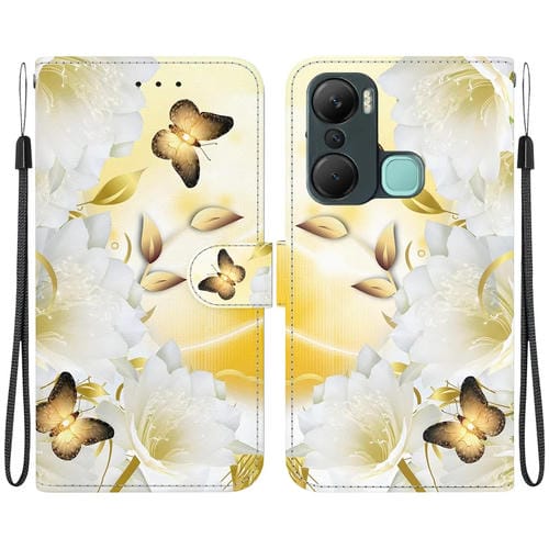 Funda de Cuero para Infinix Hot 12 Pro con Dibujo Coloreado y Textura de Cristal (Epiphyllum Mariposa Dorada)
