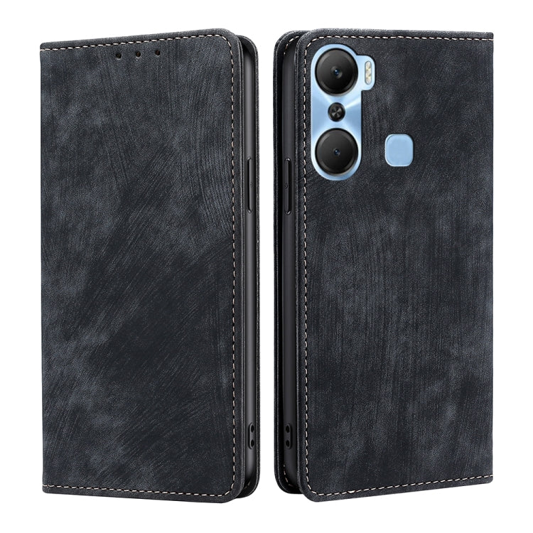Funda de Cuero Magnética para Infinix Hot 12 Pro con RFID y Cepillo Antirrobo (Negro)