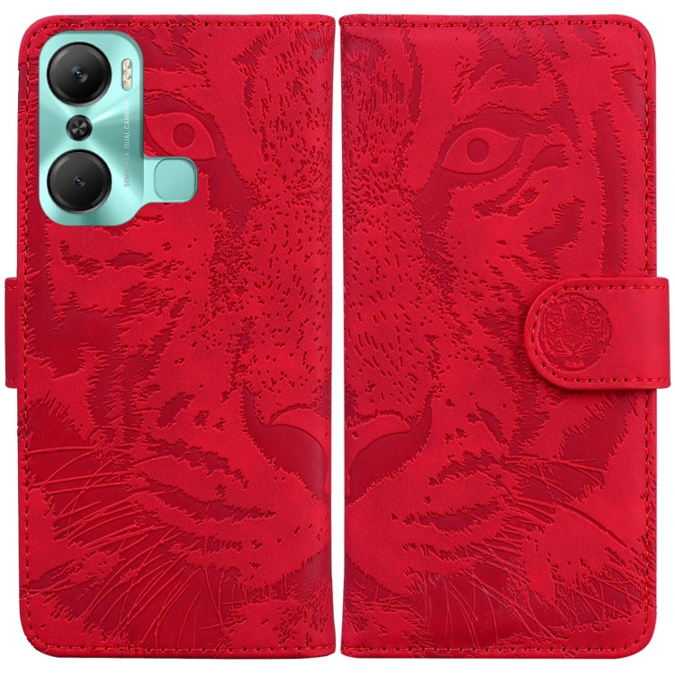 Funda de Cuero para Infinix Hot 12 Pro con Tapa Horizontal y Diseño Tiger (Rojo)