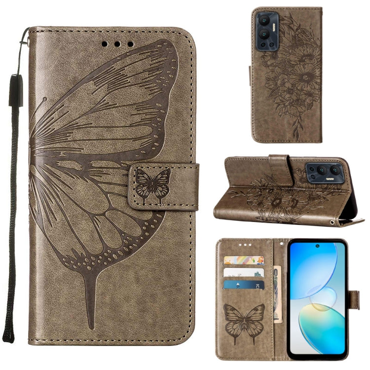 Estuche para Teléfono Infinix Hot 12 X6817 Cuero con Tapa de Mariposa en Relieve (Gris)