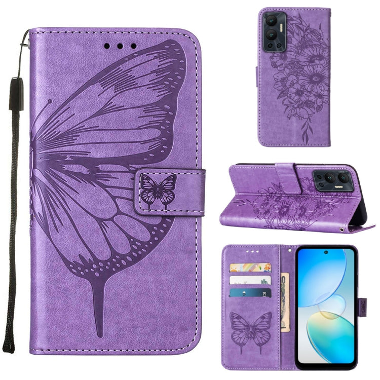 Estuche para Infinix Hot 12 X6817 de Cuero con Tapa Mariposa en Relieve (Púrpura)