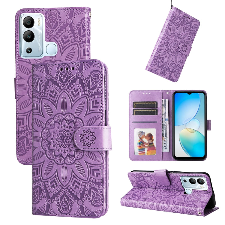 Estuche para Teléfono Infinix Hot 12I Cuero con Estampado de Girasol en Relieve (Púrpura)