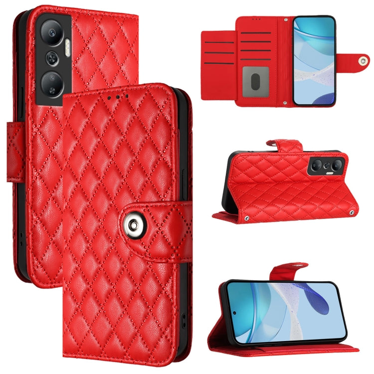 Funda para Teléfono Infinix Hot 20 4G X6826 Cuero con Tapa Textura Rómbica y Cordón (Rojo)
